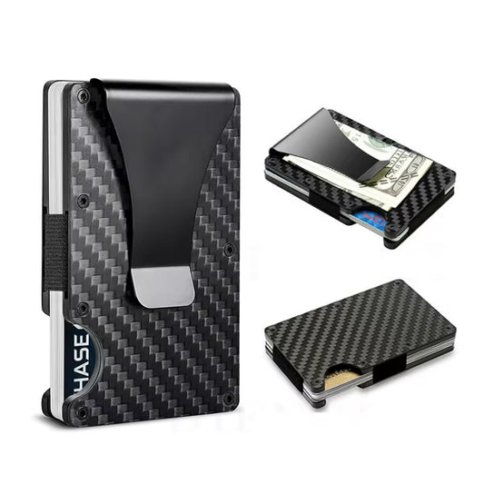 Slim Wallet for Men - Front Pocket RFID Blocking Minimalist Wallet for Men - Metal Wallet with Money Clip for Men (Carbon Fiber)