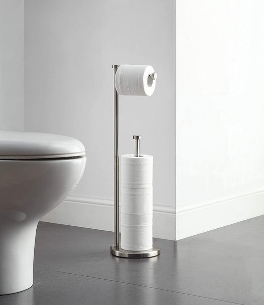 Free Standing Bathroom Toilet Paper Holder Stand with Reserve, Reserve Area Has Enough Space for Jumbo Roll