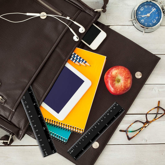Plastic Ruler Straight Ruler Plastic Measuring Tool 12 Inches and 6 Inches, 2 Pieces (Black)